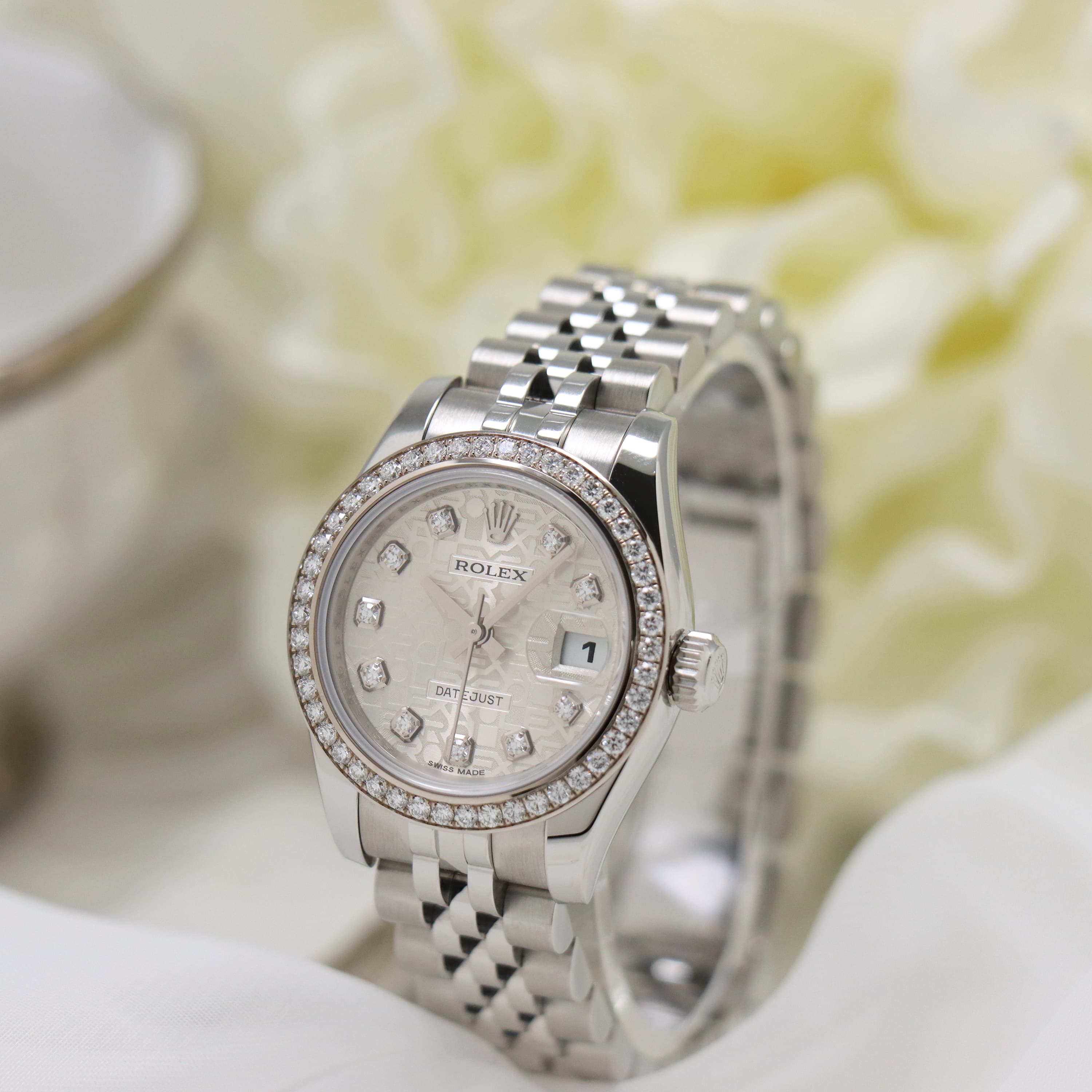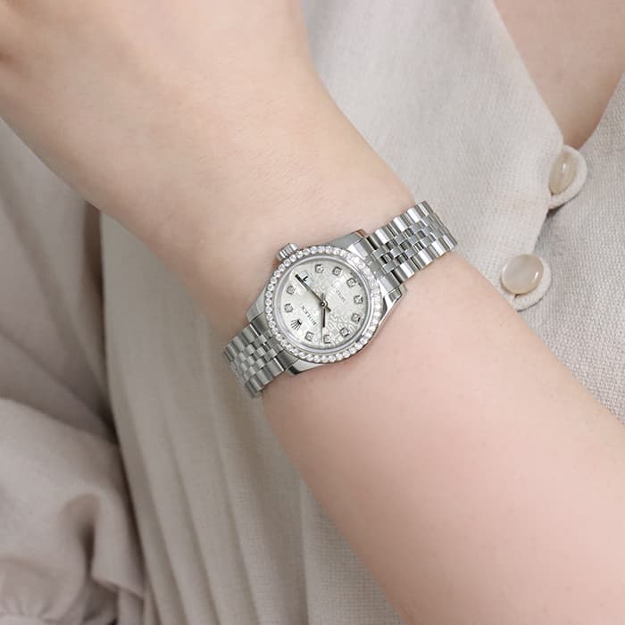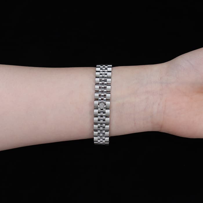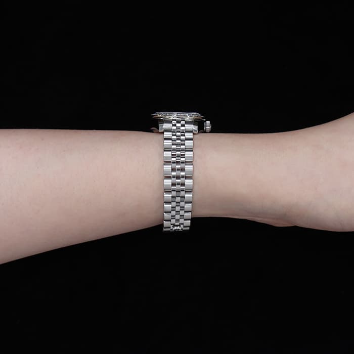 モデル名にもなった「デイトジャスト」機構が搭載されたドレス系シリーズの上級モデルです。