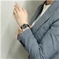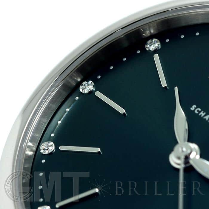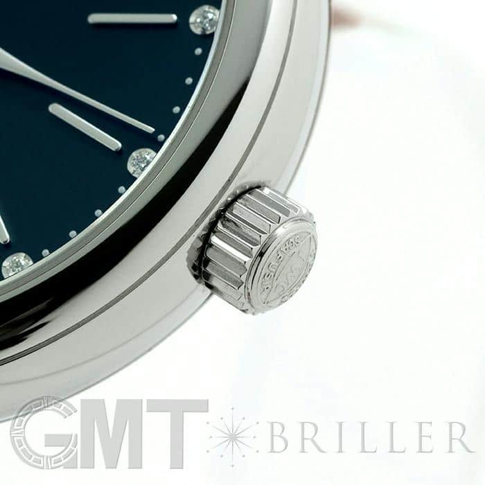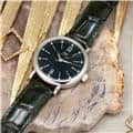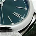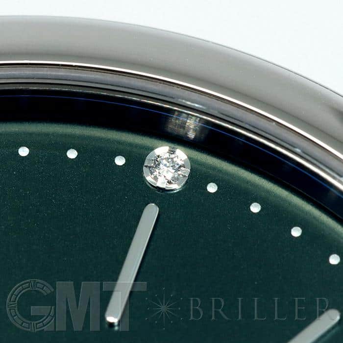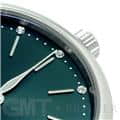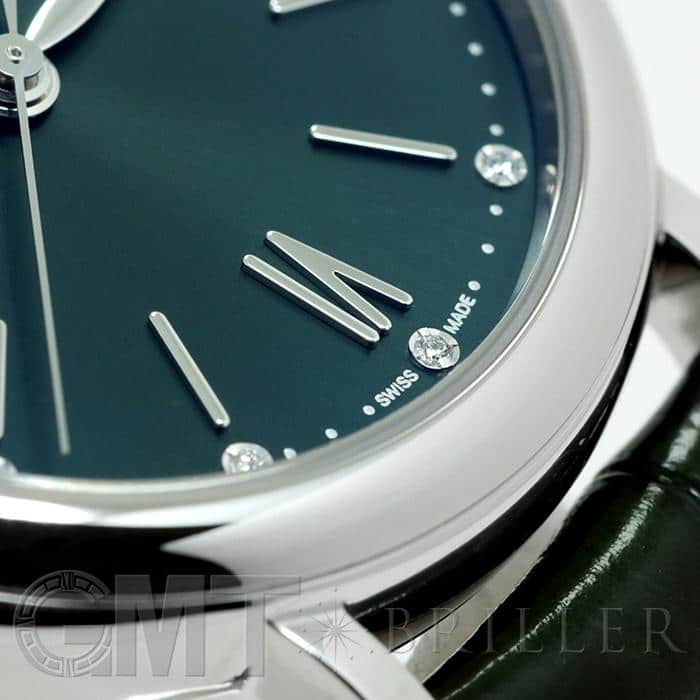 イタリアの高級リゾート地の名前が付けられた「ポートフィノ」コレクション。クラシックでエレガントなデザインが魅力的です。女性らしい優雅な印象を持つ34mmのサイズ感は、細い手首にもぴったりとフィットし、また12ポイントのダイヤモンドが手元を華やかに彩ります。イタリアの名門靴メーカーのサントーニ社製の手染めされたグリーンレザーベルトと、文字盤のグリーンカラーの組み合わせは洗練された印象で、どんなファッションに合わせるか考えるだけで楽しくなります。