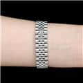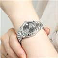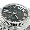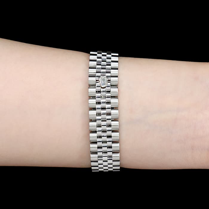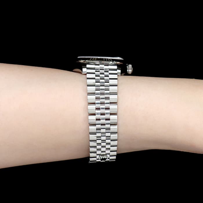 流行に左右されない普遍的なデザインで、男女問わず多くのファンに愛される「デイトジャスト」コレクション。ステンレスに上質な輝きのホワイトゴールドを組合わせることで、エレガントな雰囲気を演出しています。落ち着いたダークグレー色の文字盤は品が良く、どんな服装やシーンでも合わせやすいです。6時位置の「VI」にさりげなくあしらわれたダイヤモンドが特別感を高めます。ケース径31mmは少し大きめで視認性も良く、一回り小さいモデルよりも落ち着いた雰囲気が楽しめます。