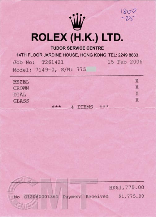 付属品 内外箱・冊子・修理明細書(香港)