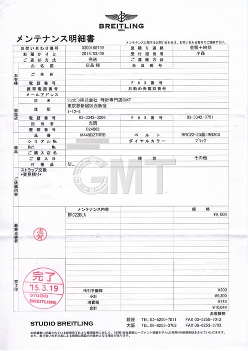 内外箱・国際保証書・冊子・修理明細