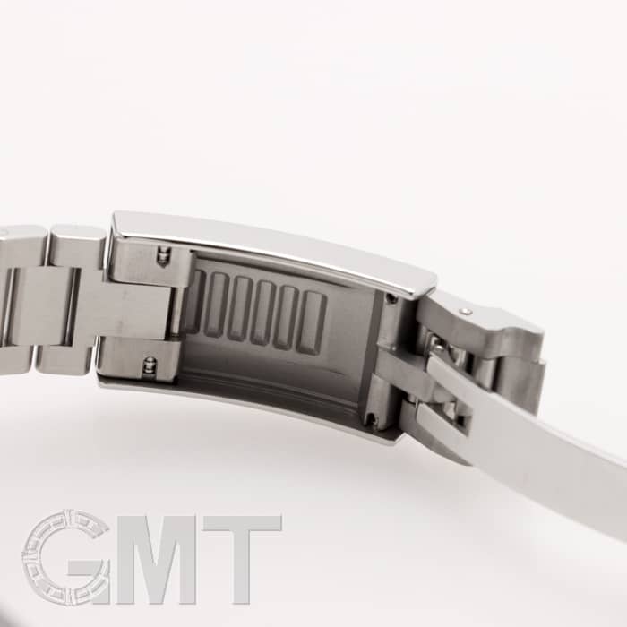 【バックル】 バックルも旧型と現行モデルで変更されていて、厚みがもたされた事により堅牢性が増しています。 また、スライド式になっており、簡単に長さを微調整できるので、わざわざお店にいって微調整を頼んだり、工具を用いなくても長さを変えられるようになりました。 最初ブレスレットのコマを抜いてサイズ調整をする場合は、微調整をバックルの中間ぐらいに位置させてからコマを外してもらうと、自分で長くも短くもできるので、オススメです。 因みに写真左下は微調整(エクステンション)を伸ばしていない状態(約20.5cm)、写真右下は伸ばしている状態(約21.5cm)です。 約1cmは調整可能なので、普段の使用に大変重宝します。 |