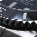 【ベゼル】 旧型の「16610」(写真右)ではベゼルはアルミニウムでしたが現行の「16610LN」(写真左)ではセラミック素材が使用されています。 色々な媒体で紹介されていますので、ご存知の方も多いかと思います。 普段使用していると「ベゼル」部分が接触し、傷ついてしまう事がよくあります。 サブマリーナでは傷つきにくいセラミックを使用する事で、長年使用しても劣化の印象があまりなく、綺麗なフェイスを楽しむことができます。 |