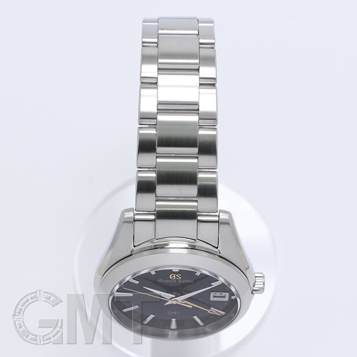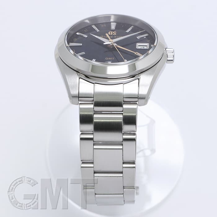 ドーフィン針にバーインデックス、そしてゴールドのGSロゴとGMTハンドがアクセントとなり