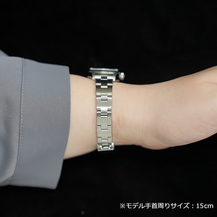 高い耐水性を誇る「オイスターケース」に高精度な自動巻き「パーペチュアル」機構を搭載しています。 ブレスレットがとても軽いのでデイリーウォッチとして使いやすく、肌なじみの良いブレスレット形状で着け心地に優れたモデルです。 ロレックスの王冠マークがきらめくブラックの文字盤に合わせたバーのインデックスや針が凛とした印象に見せ、余計なものを省いたシンプルな機能美とその普遍的なデザインがオンオフ問わず使える実用的なモデルとして多くの支持を集めています。初めて機械式時計を選ぶ方にもオススメの1本です。