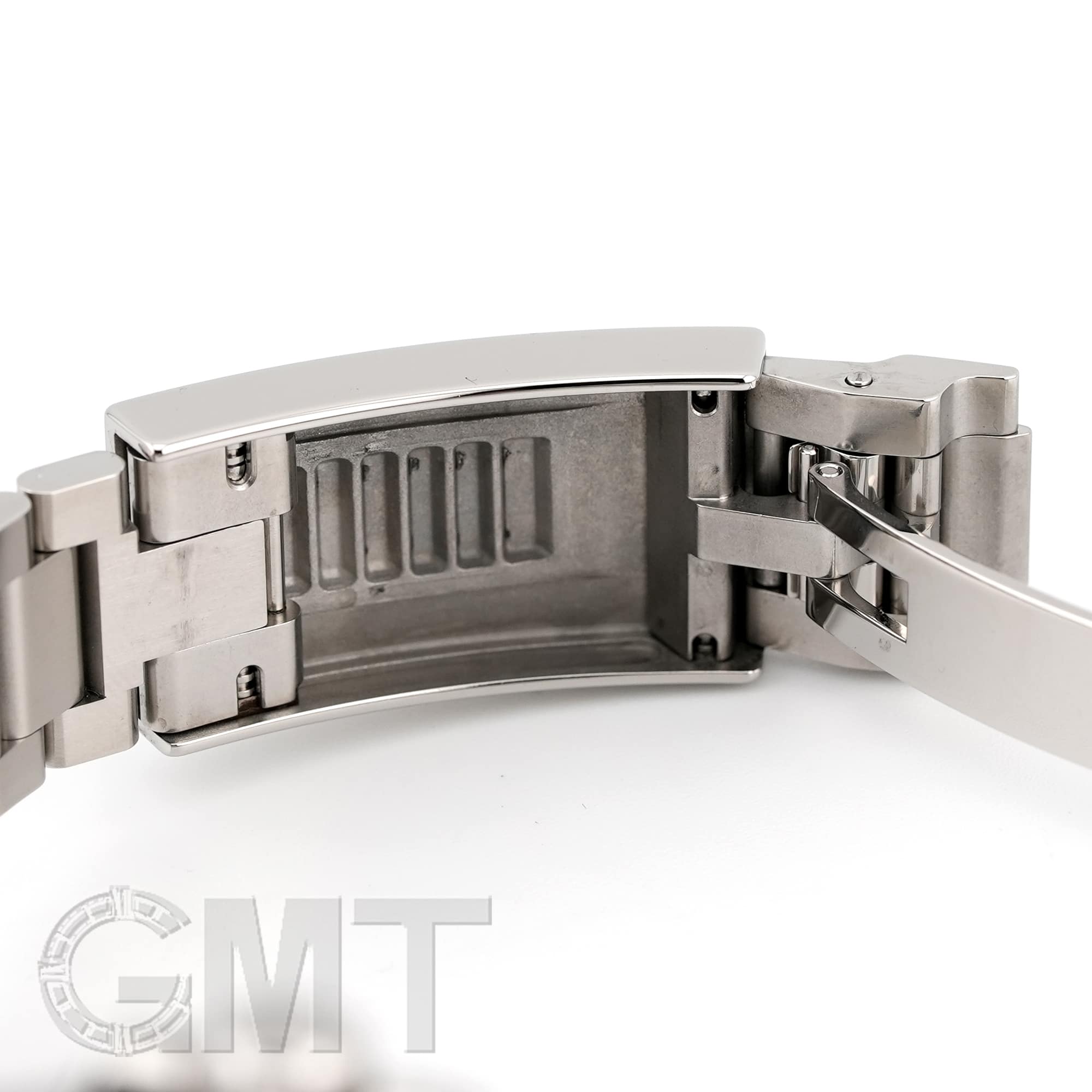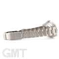 【バックル】 バックルも旧型と現行モデルで変更されていて、厚みがもたされた事により堅牢性が増しています。 また、スライド式になっており、簡単に長さを微調整できるので、わざわざお店にいって微調整を頼んだり、工具を用いなくても長さを変えられるようになりました。 最初ブレスレットのコマを抜いてサイズ調整をする場合は、微調整をバックルの中間ぐらいに位置させてからコマを外してもらうと、自分で長くも短くもできるので、オススメです。 因みに写真左下は微調整(エクステンション)を伸ばしていない状態(約20.5cm)、写真右下は伸ばしている状態(約21.5cm)です。 約1cmは調整可能なので、普段の使用に大変重宝します。 |