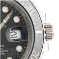 【ケース厚】 通常、防水性を高めようとしたらケース厚も増してゆきます。 写真では同じ「ダイバーズウォッチ」で、ROLEX最大の防水性を誇るディープシー Ref.116660(写真右)と厚みを比較してみました。 ディープシーは3900m防水・ケース厚約17.5mmに対し、サブマリーナ(写真左)は300m防水・ケース厚約12mmです。 |