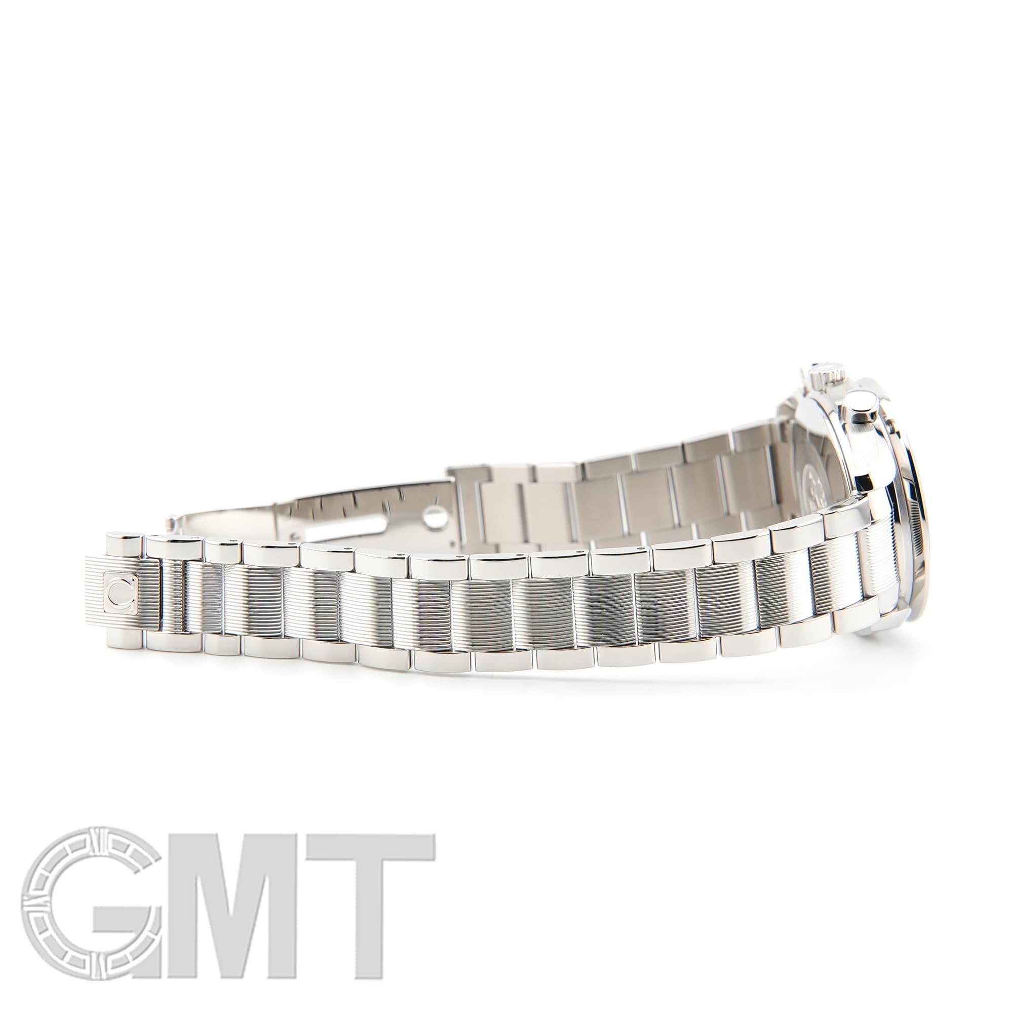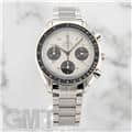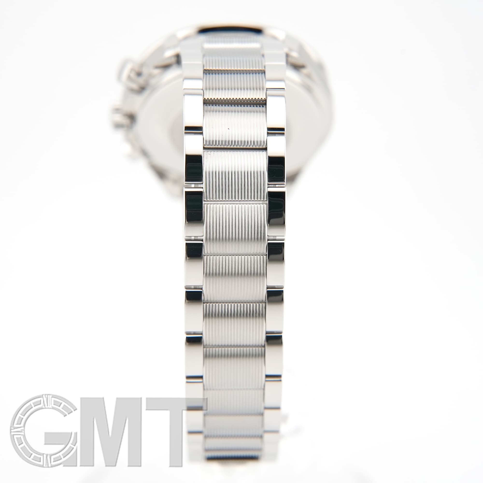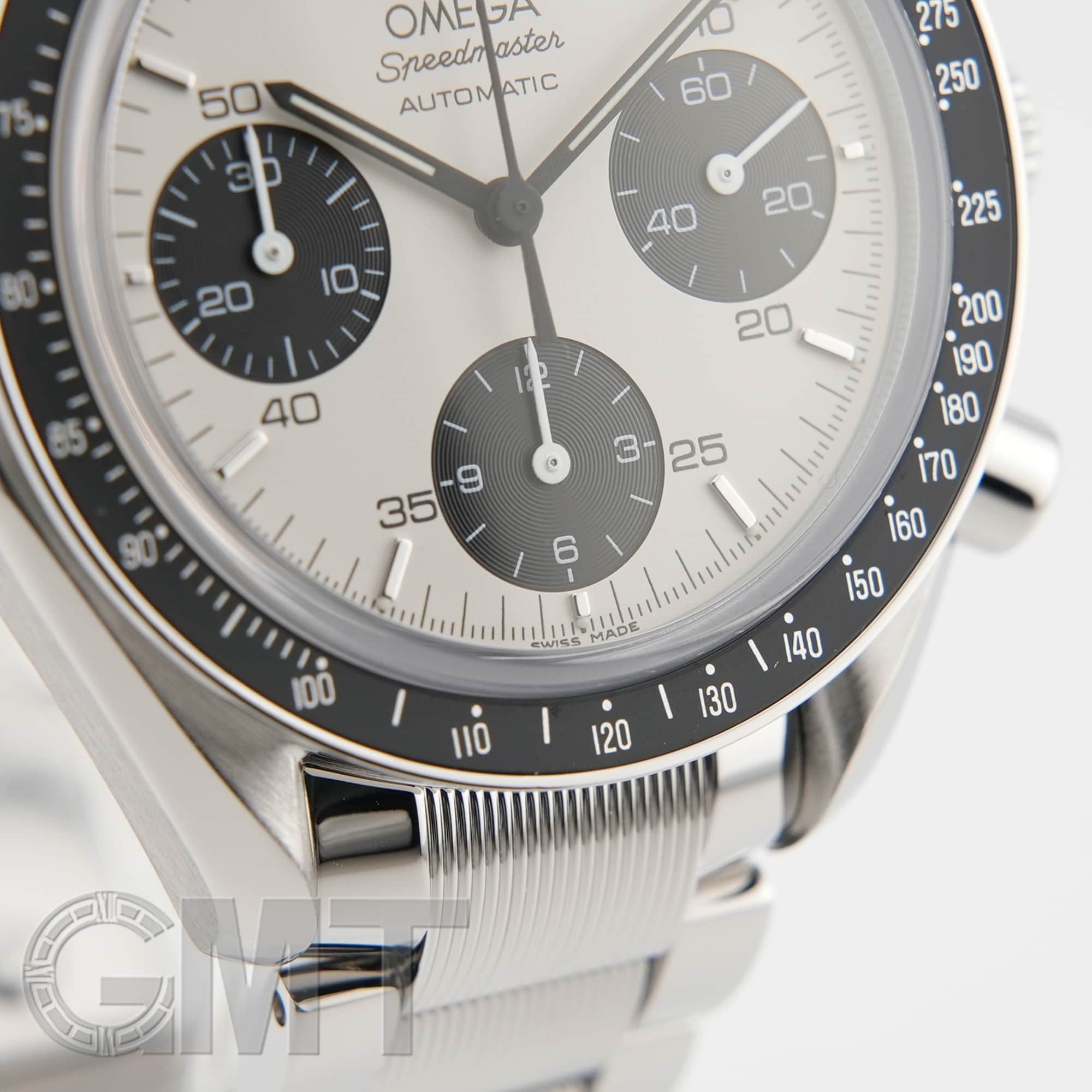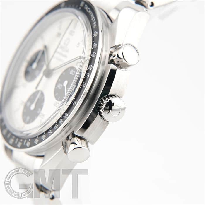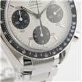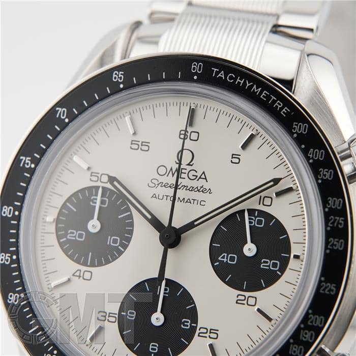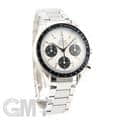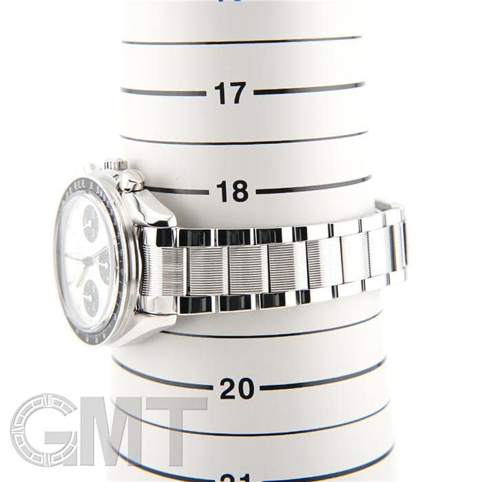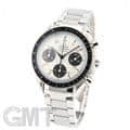 最大の特徴はブレスレットで、中央のコマのみにストライプ模様が施されたデザインは、他のスピードマスターではまず見られない特別なものとなっています。