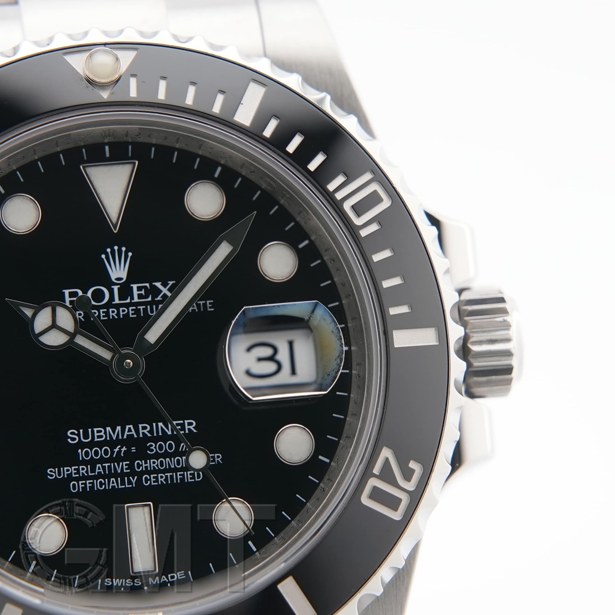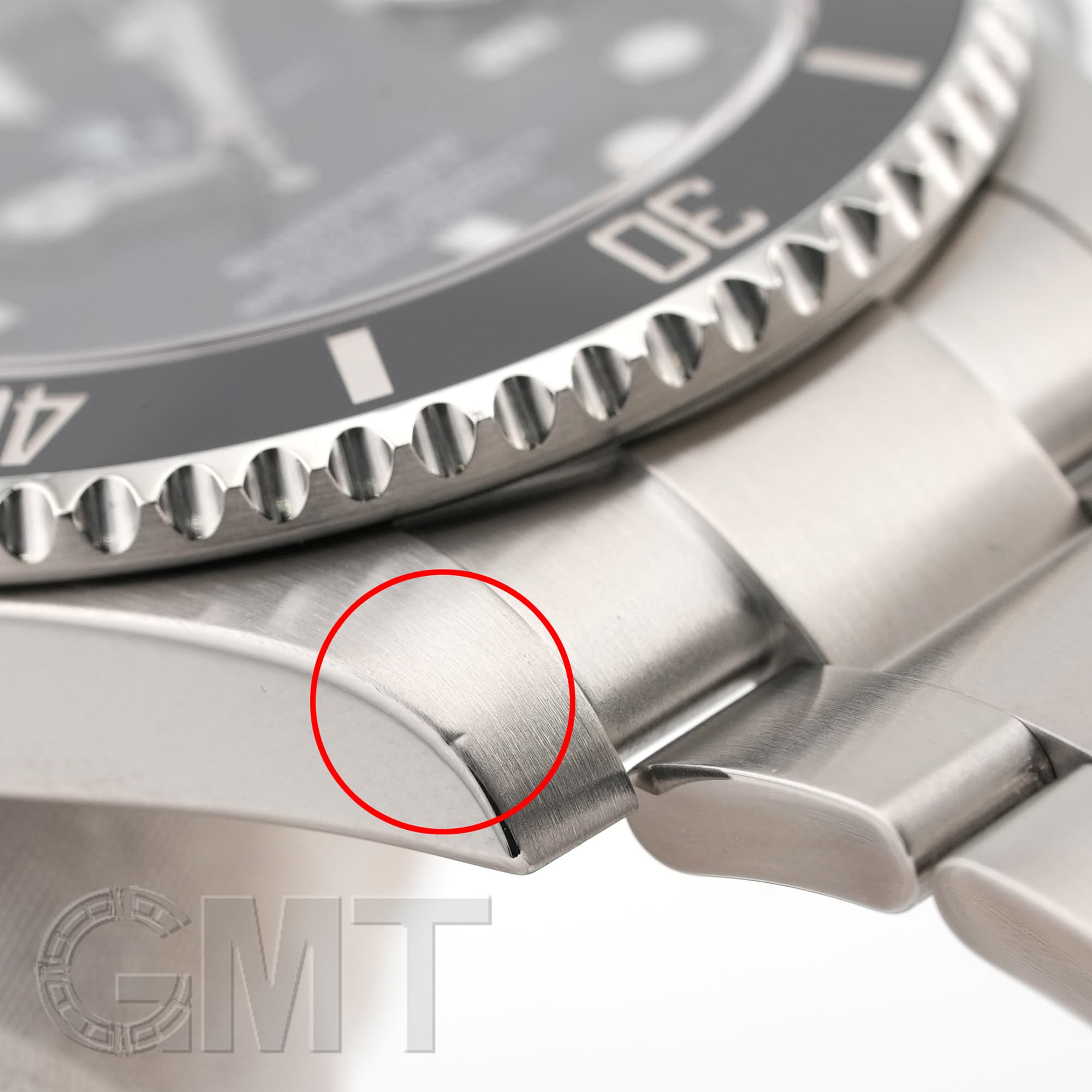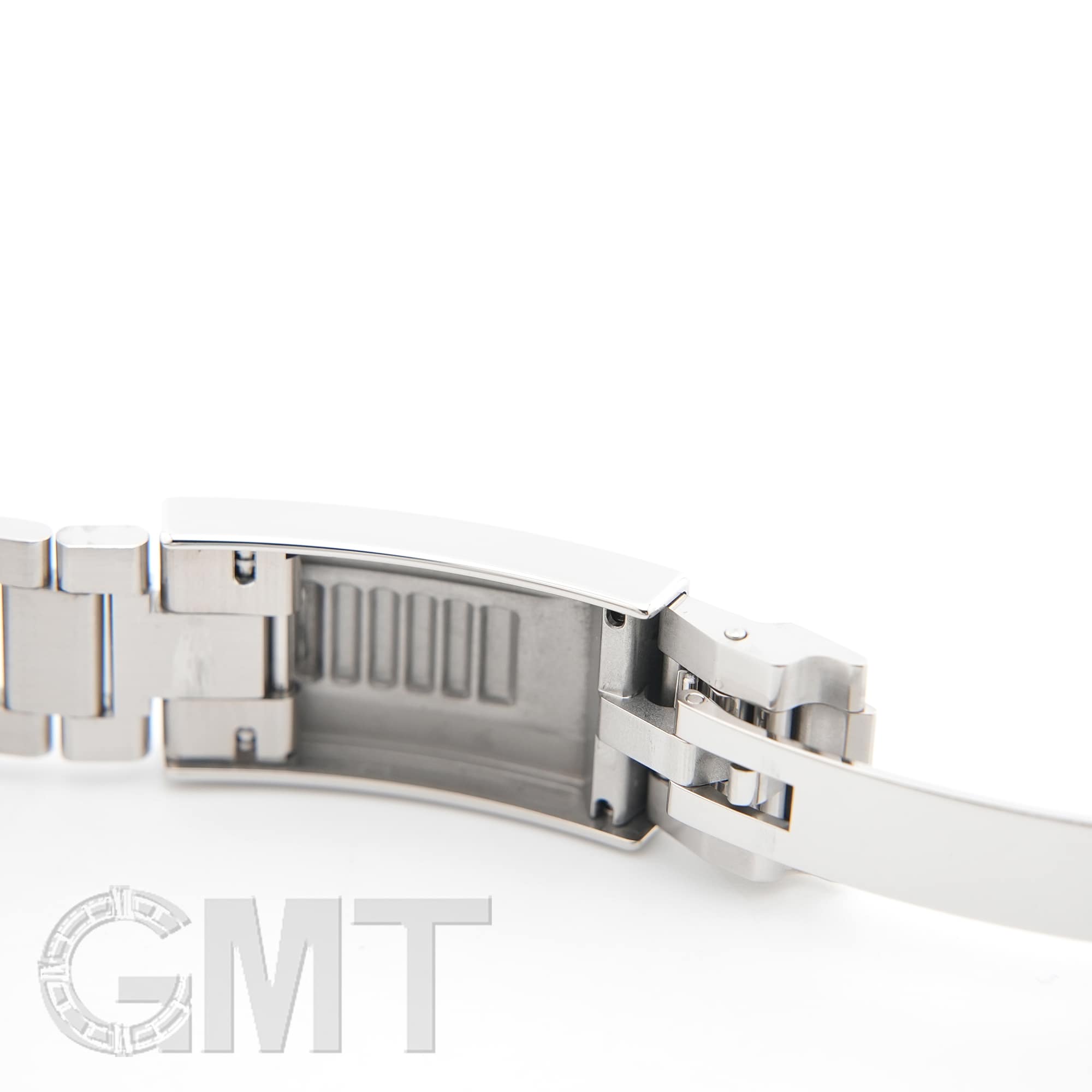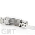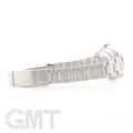 【バックル】 バックルも旧型と現行モデルで変更されていて、厚みがもたされた事により堅牢性が増しています。 また、スライド式になっており、簡単に長さを微調整できるので、わざわざお店にいって微調整を頼んだり、工具を用いなくても長さを変えられるようになりました。 最初ブレスレットのコマを抜いてサイズ調整をする場合は、微調整をバックルの中間ぐらいに位置させてからコマを外してもらうと、自分で長くも短くもできるので、オススメです。 因みに写真左下は微調整(エクステンション)を伸ばしていない状態(約20.5cm)、写真右下は伸ばしている状態(約21.5cm)です。 約1cmは調整可能なので、普段の使用に大変重宝します。 |