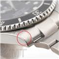 【ベゼル】 旧型の「16610」(写真右)ではベゼルはアルミニウムでしたが現行の「16610LN」(写真左)ではセラミック素材が使用されています。 色々な媒体で紹介されていますので、ご存知の方も多いかと思います。 普段使用していると「ベゼル」部分が接触し、傷ついてしまう事がよくあります。 サブマリーナでは傷つきにくいセラミックを使用する事で、長年使用しても劣化の印象があまりなく、綺麗なフェイスを楽しむことができます。 |
