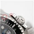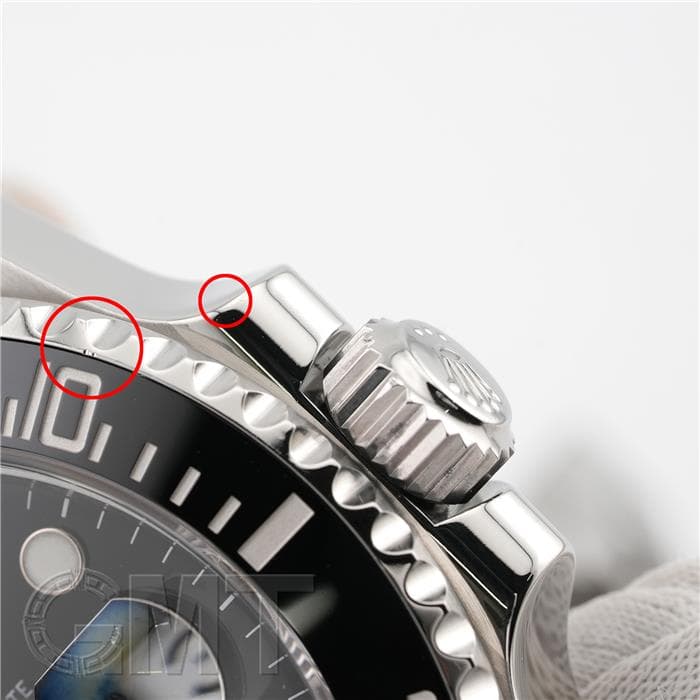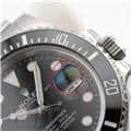 【ケース厚】 通常、防水性を高めようとしたらケース厚も増してゆきます。 写真では同じ「ダイバーズウォッチ」で、ROLEX最大の防水性を誇るディープシー Ref.116660(写真右)と厚みを比較してみました。 ディープシーは3900m防水・ケース厚約17.5mmに対し、サブマリーナ(写真左)は300m防水・ケース厚約12mmです。 |