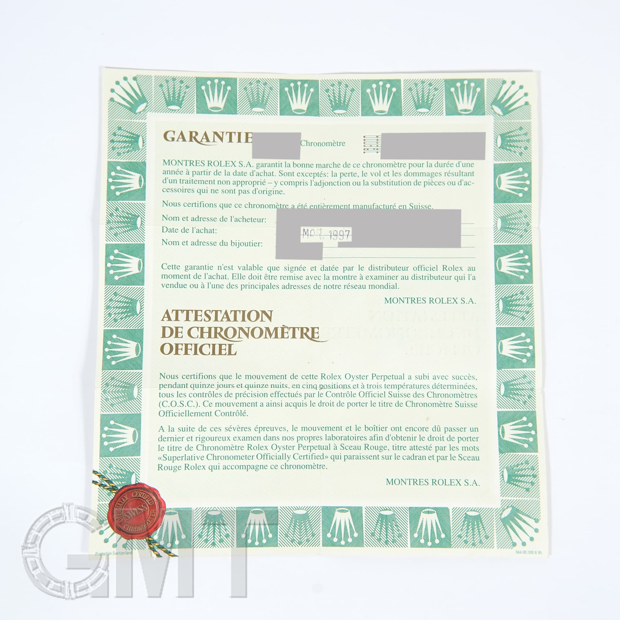 ロレックス デイデイト 18238A 保証書1997年 W番