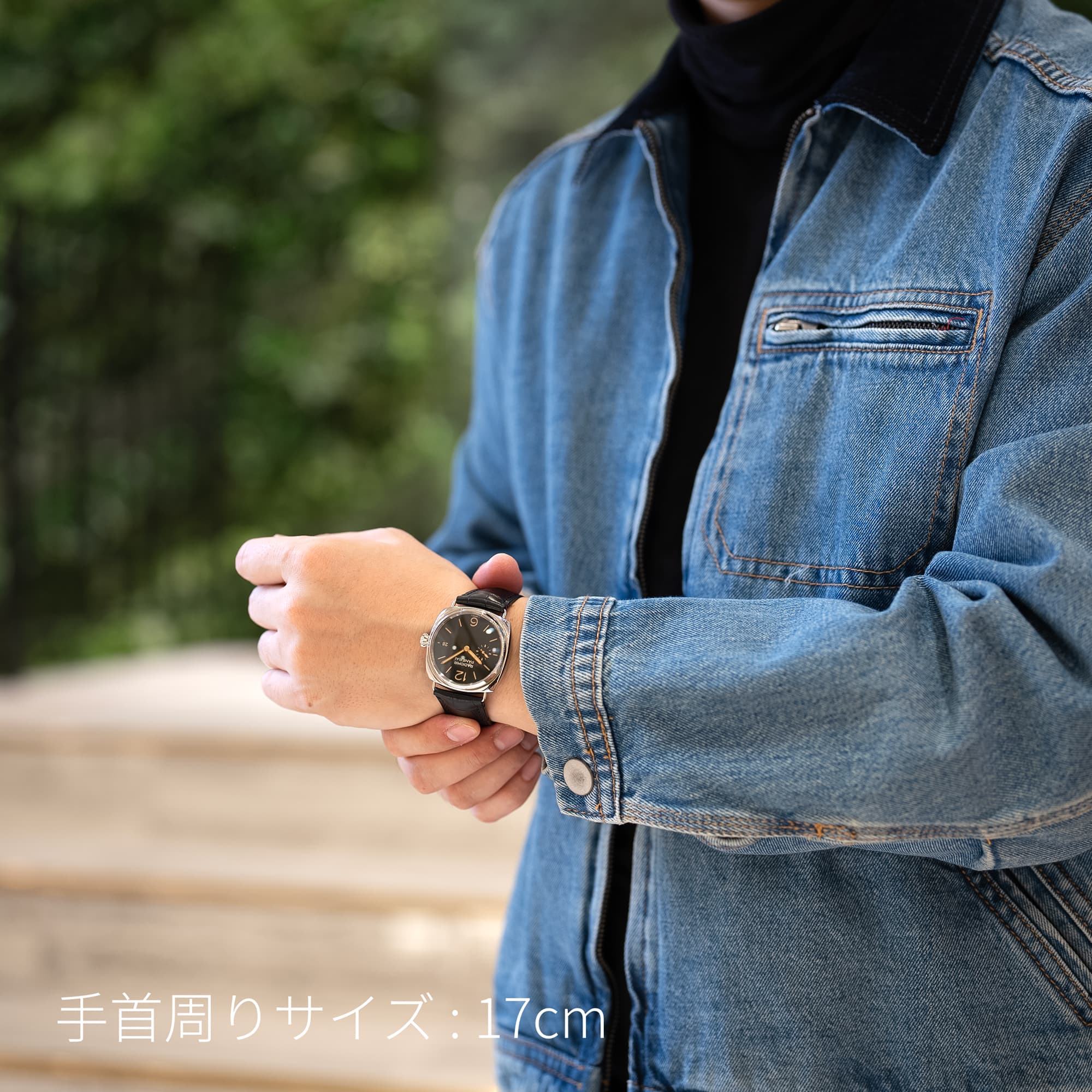 40mmケースは従来のパネライ像を覆す絶妙なサイズ感で、幅広い腕元に自然に馴染みます。
