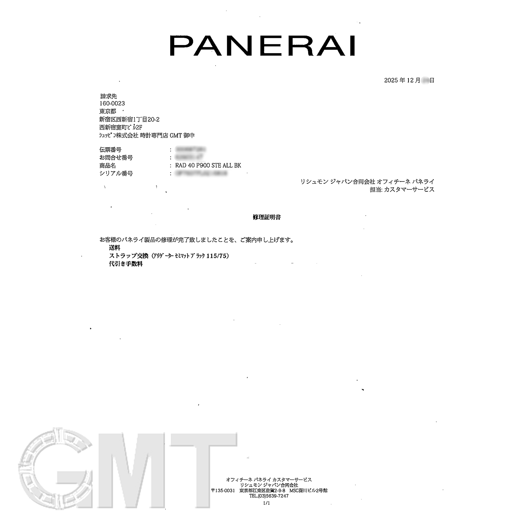 2025年12月 パネライにてストラップ交換済み