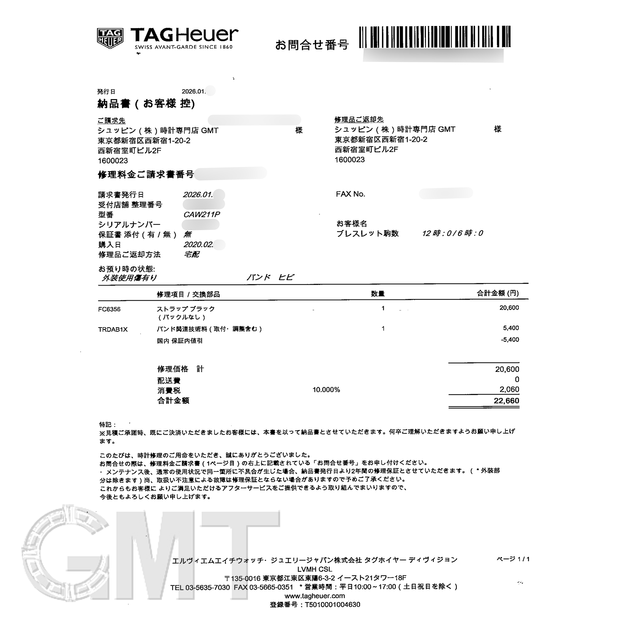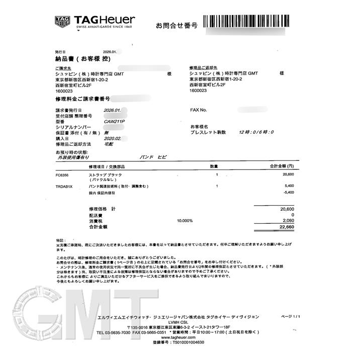 2026年1月 タグ・ホイヤーにてストラップ交換済み